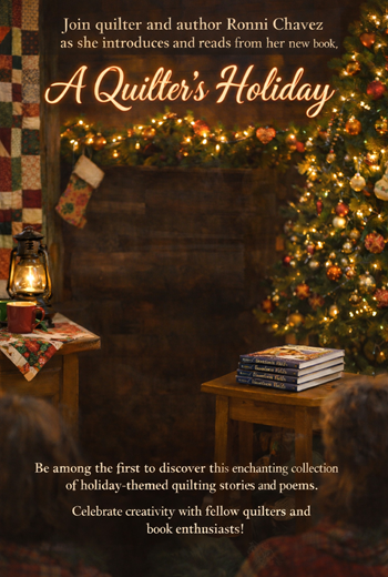 Join quilter and author Ronni Chavez as she introduces and reads from her new book, A Quilter’s Holiday. Be among the first to discover this enchanting collection of holiday-themed quilting stories and poems. Celebrate creativity with fellow quilters and book enthusiasts through author-led readings and lively conversations on the art of quilting, the magic of storytelling, and all the merriment of a holiday season. Don’t miss the fun!